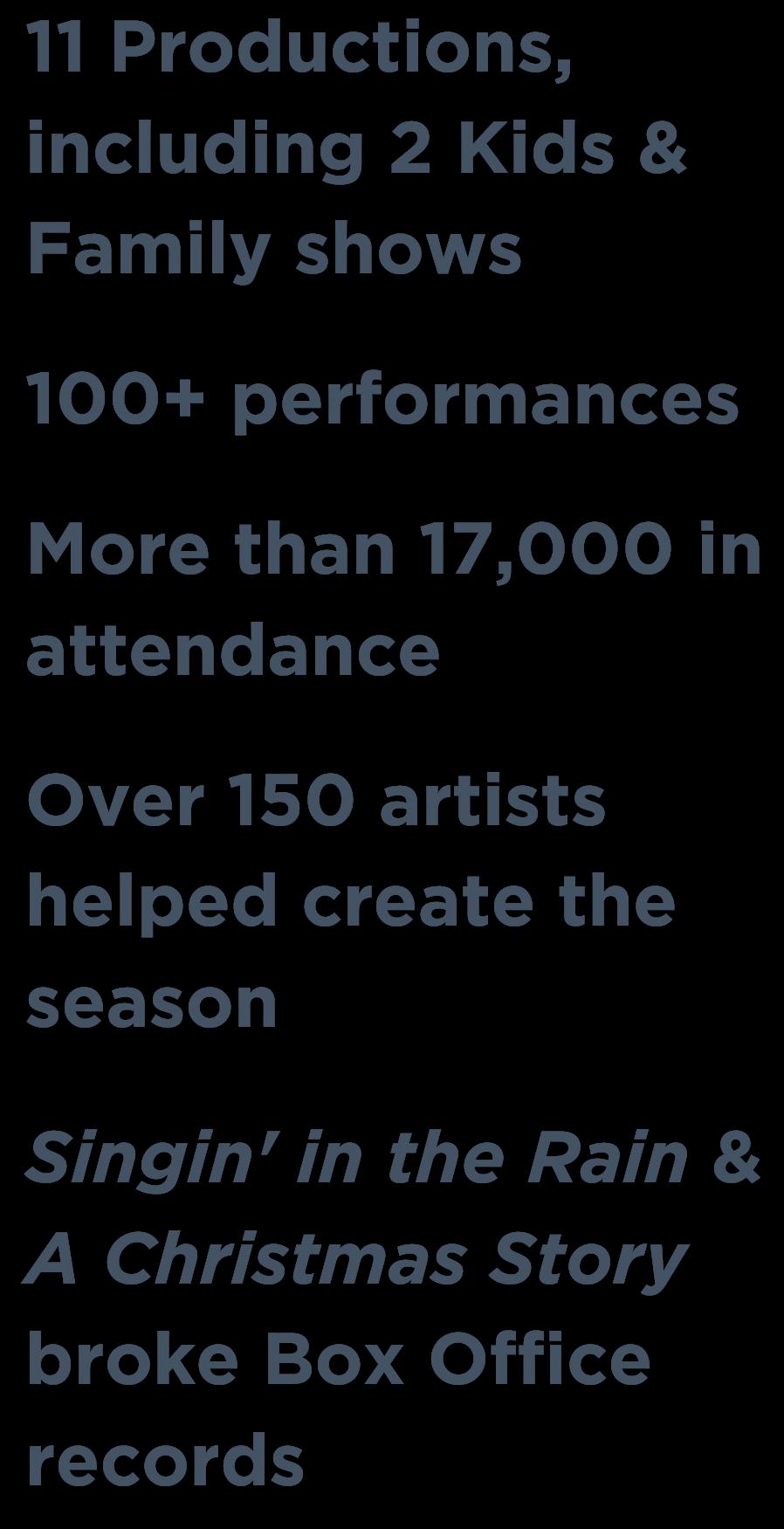 productions Ten-Minute Plays artists, actors, designers, and volunteers 400 190 10,000+