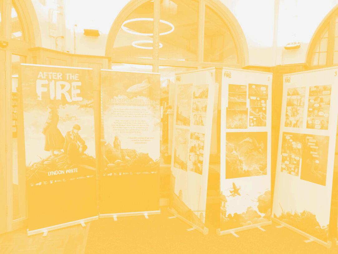 Comic creator Lyndon recently worked with Barrow Library on the national Our Freedom: Then and Now campaign to mark 80 years since the end of World War 2. His comic After the Fire is the result. This exhibition shows the finished work.