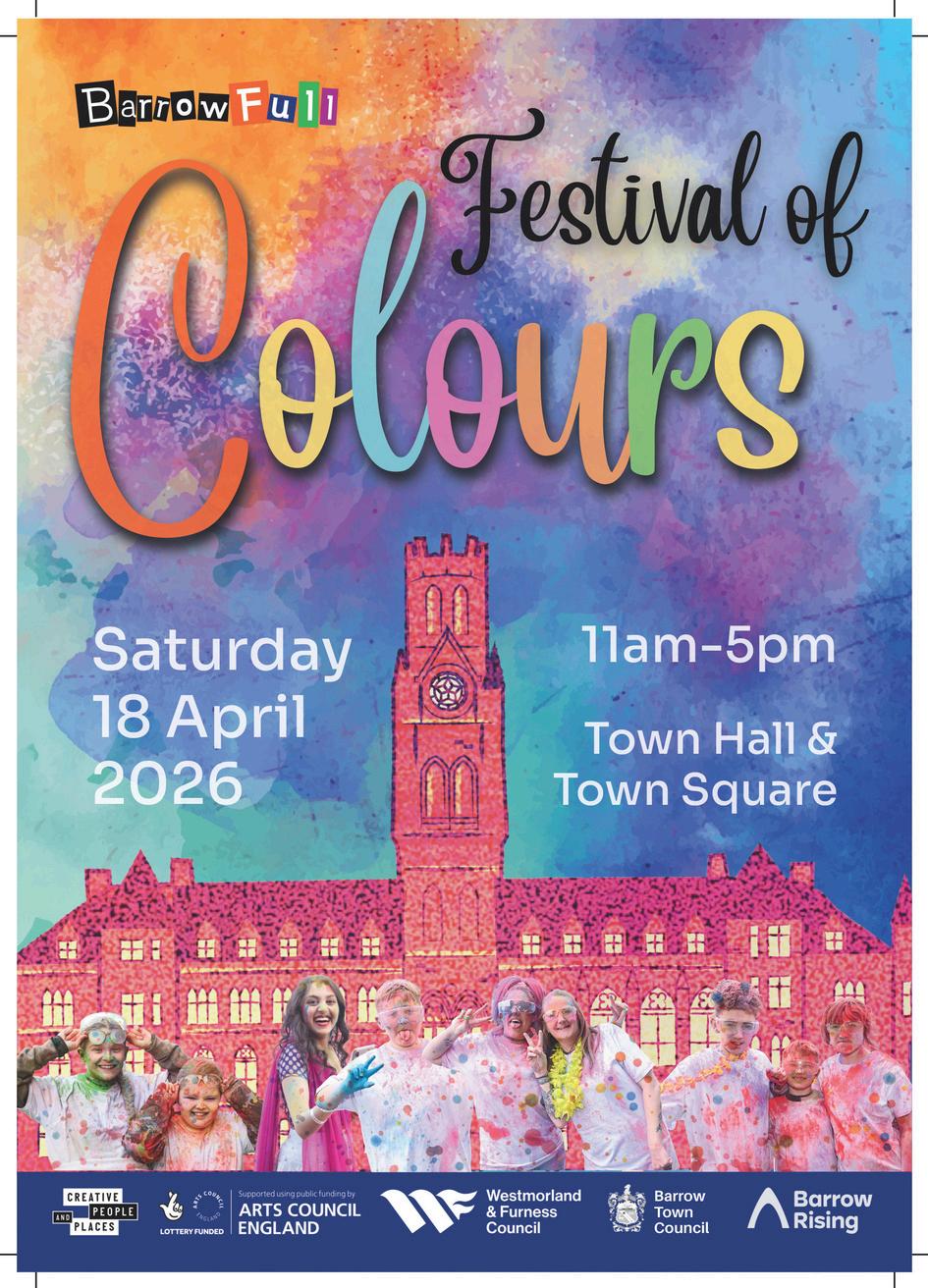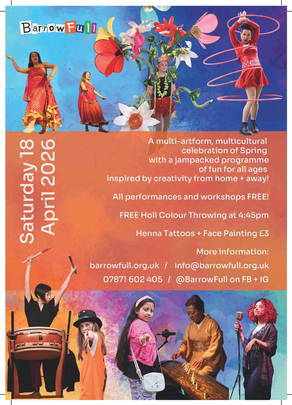 Don’t forget - Barrowfull’s fabulous Festival of Colours is taking place today too! Flip this programme over to find out about their exciting, colourful, FREE, events for all ages...