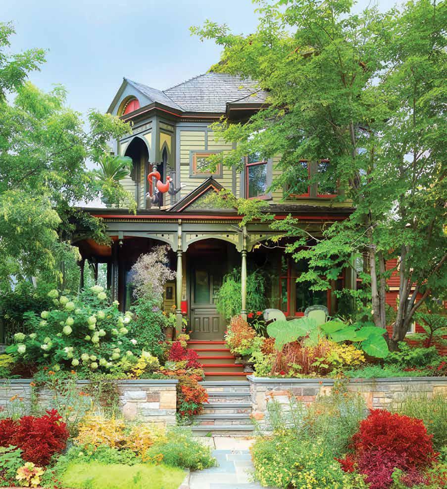 When David Heide saw Scott Endres’s 1880s improbably ornamented Queen Anne cottage, he knew exactly how to put it back together to create a background for Endres’s fantastic gardens.