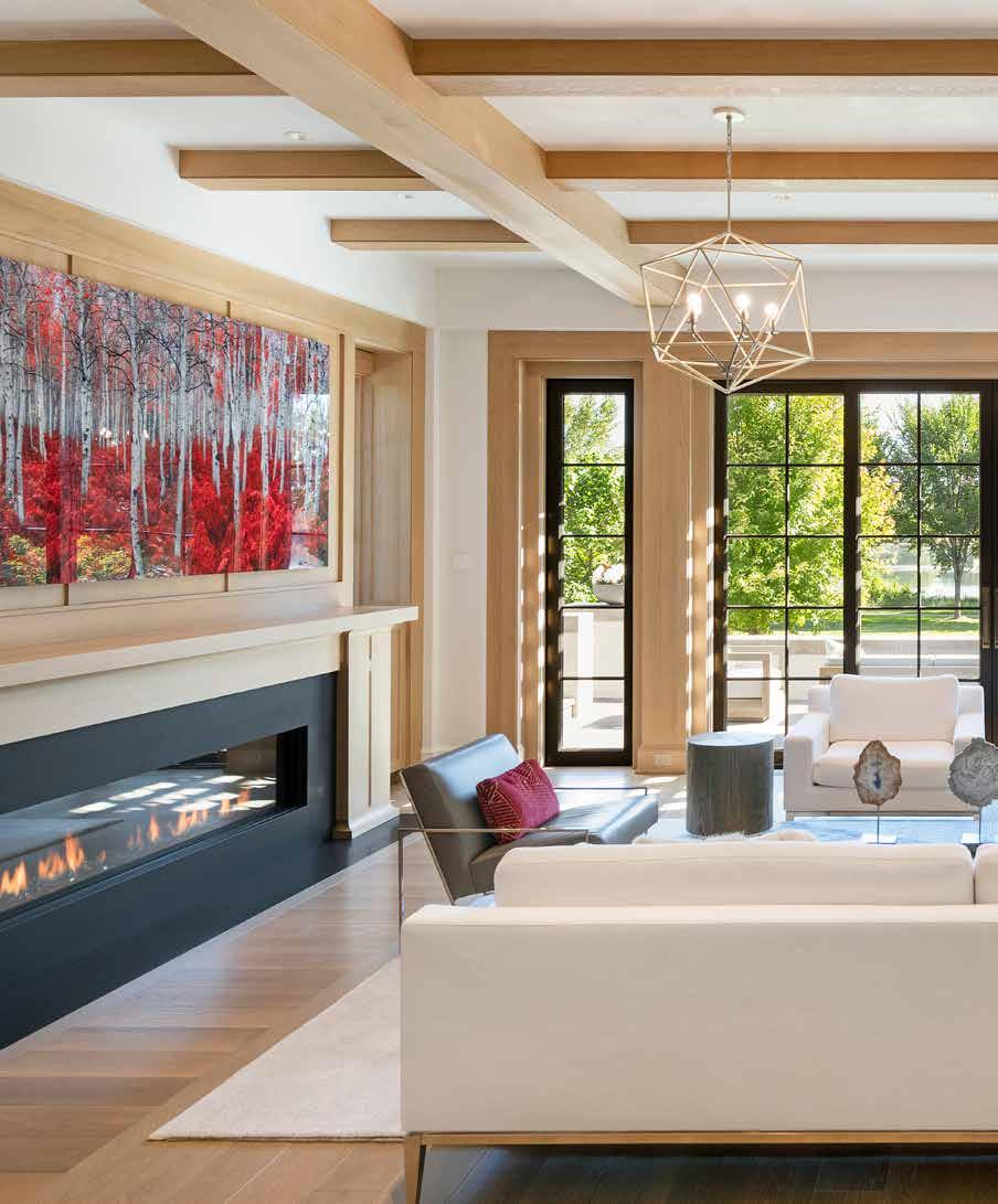 To create it, TEA2 proposed a modern translation of English Arts and Crafts style with a trio of gables that run parallel to the street, establishing a contemporary rowhouse form to maximize the lot. The front gable is narrower, and flanked by the entrance and windowed study, effectively granting natural light and lake views to rooms farther back in the home. It also minimizes the home’s street presence — the airy, nearly 10,000 sq. ft. two-story reads like a smaller storyand-a-half.