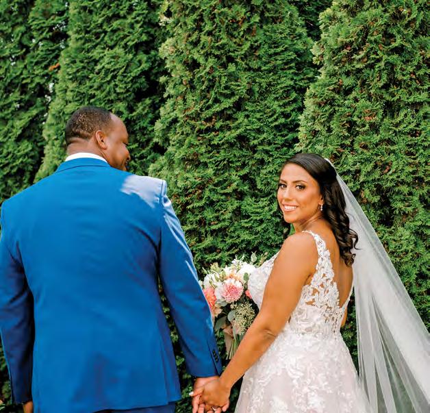 Katie says, about their wedding venue, “When we found Timber Hill Farm, we knew it was our dream location. Being close to our family in Gilford made a lot of sense for people traveling to the area as well. We love nature, and Charlie is a chef, so the idea of being on a family-run farm and having a farm-to-table meal while overlooking the lake and the mountains was perfect for us. The barn is a complete work of art, and the fact that the Howe family built it themselves makes it even more impressive and unique. I think many couples can attest to the beauty and specialness of this venue, and owners Isaac and Jennifer were so helpful and caring. They truly made us feel like part of their family - and became instant friends. I wouldn’t have changed a thing.” continued on page 42