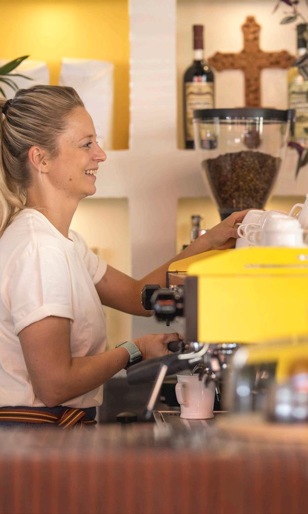 A custom bright yellow La Marzocco spins its magic with coffee from Auckland roasters eighthirty and New Zealand-owned Webster’s loose leaf teas are on the menu along with daily baked treats.