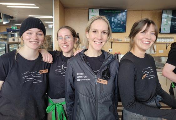 Coffee crew... Kanysha Bax, Macy Hill, Daniella Surian and Heidi Fraser kept the hot drinks flowing as a weather bomb hit The Remarks ski field on Saturday