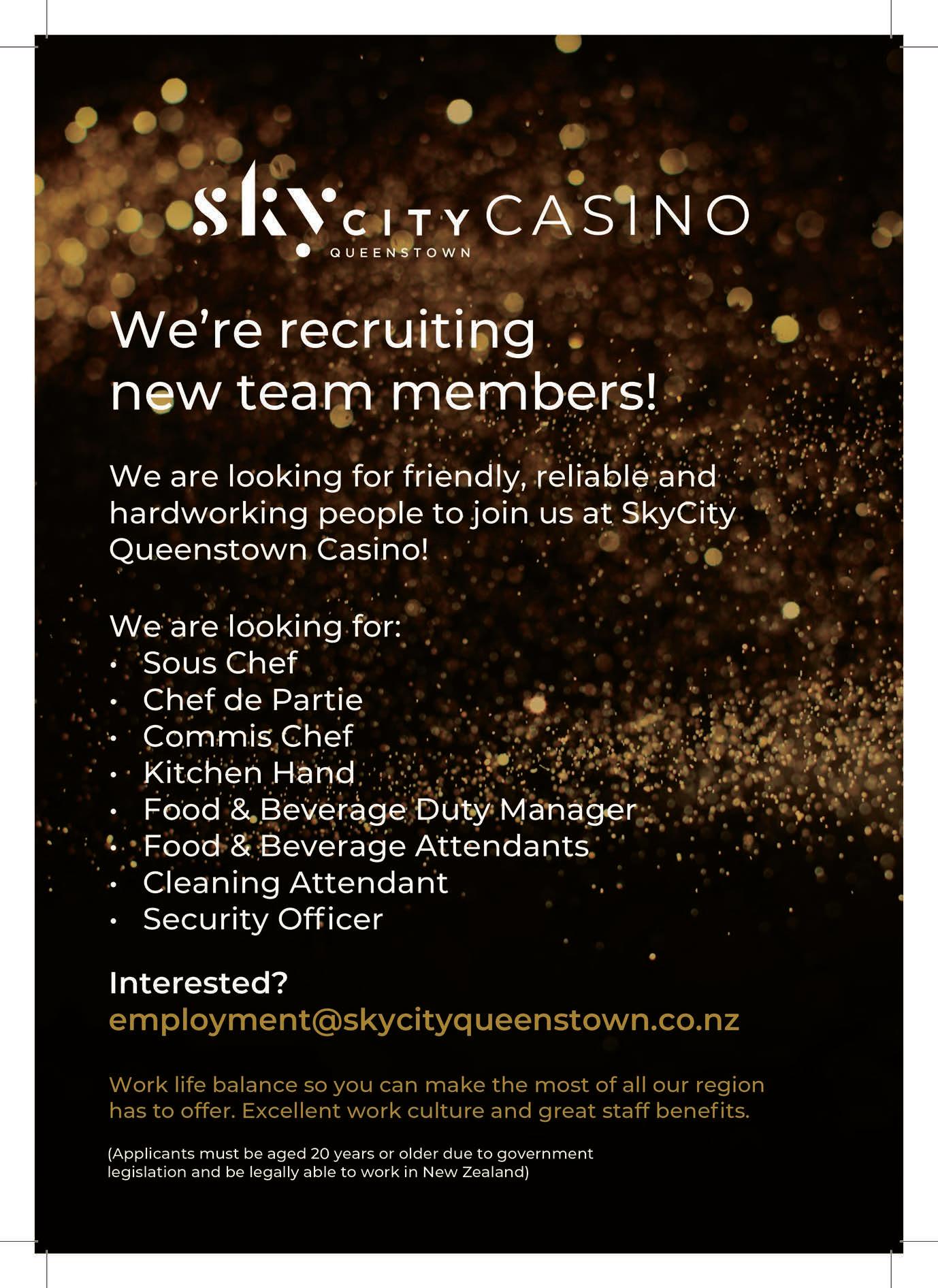 Us We have incredible opportunities in a variety of roles with shifts and hours that will suit whatever you are looking for across our 3 Queenstown properties. Advertise your job vacancy Upload online at jobfix.co.nz Advertise your job vacancy jobfix.co.nz