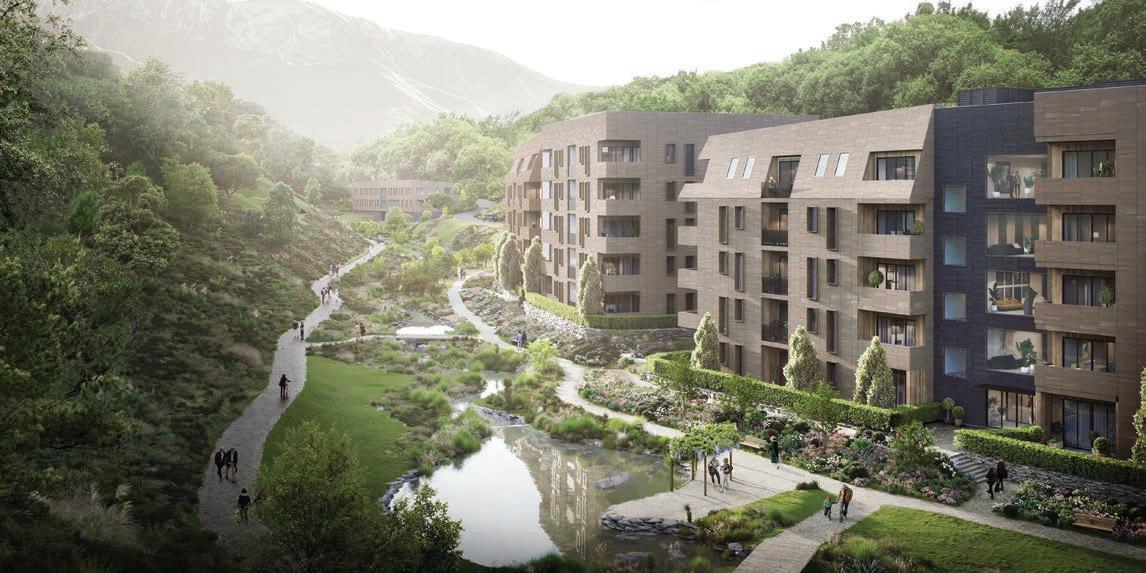 It will also feature an arrivals and amenities building with a pool, gym, reception and café at the southern end of the valley, interfacing with the existing historic Ayrburn Domain immediately to the south, and a 16-room hotel with spa facilities.