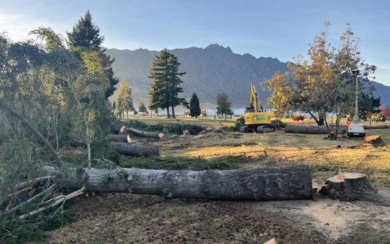 Contractors began the work to fell 33 trees, 29 shrubs and a hedge alongside State Highway 6 at Frankton Golf Course early on Monday morning, signalling the start of the $250 million NZUP road improvement project. Full report on p4 and p5
