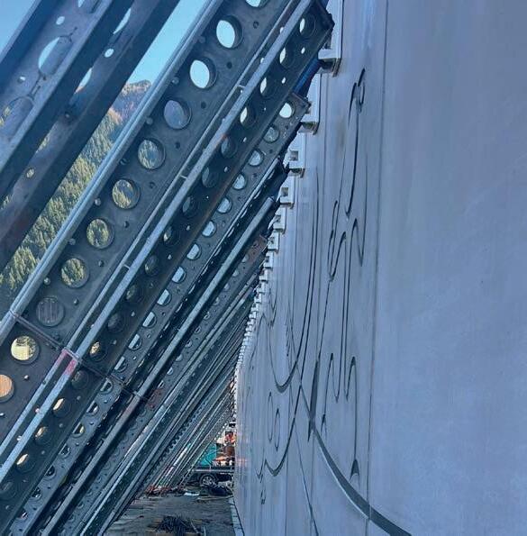 Crews are managing complex retaining wall installations at several locations along the Arterial route. The photo shows the propping that is supporting the huge pre-cast decorative panels along Henry Street, the heaviest of which weighs in at 5.3 tonnes.