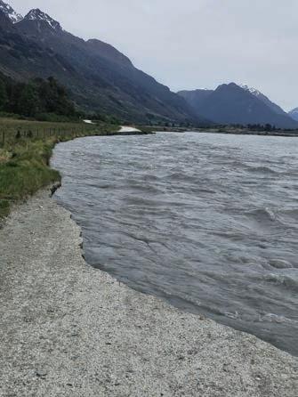 A 50-metre section of the road was washed away by the Dart River on Saturday, 9 November, following heavy rain, leaving dozens of people stranded, including guests at the Kinloch Wilderness Retreat. It also claimed a rental SUV, which had been abandoned by tourists after, somewhat ironically, becoming grounded on the other side of the road after the driver manoeuvred away from the river.