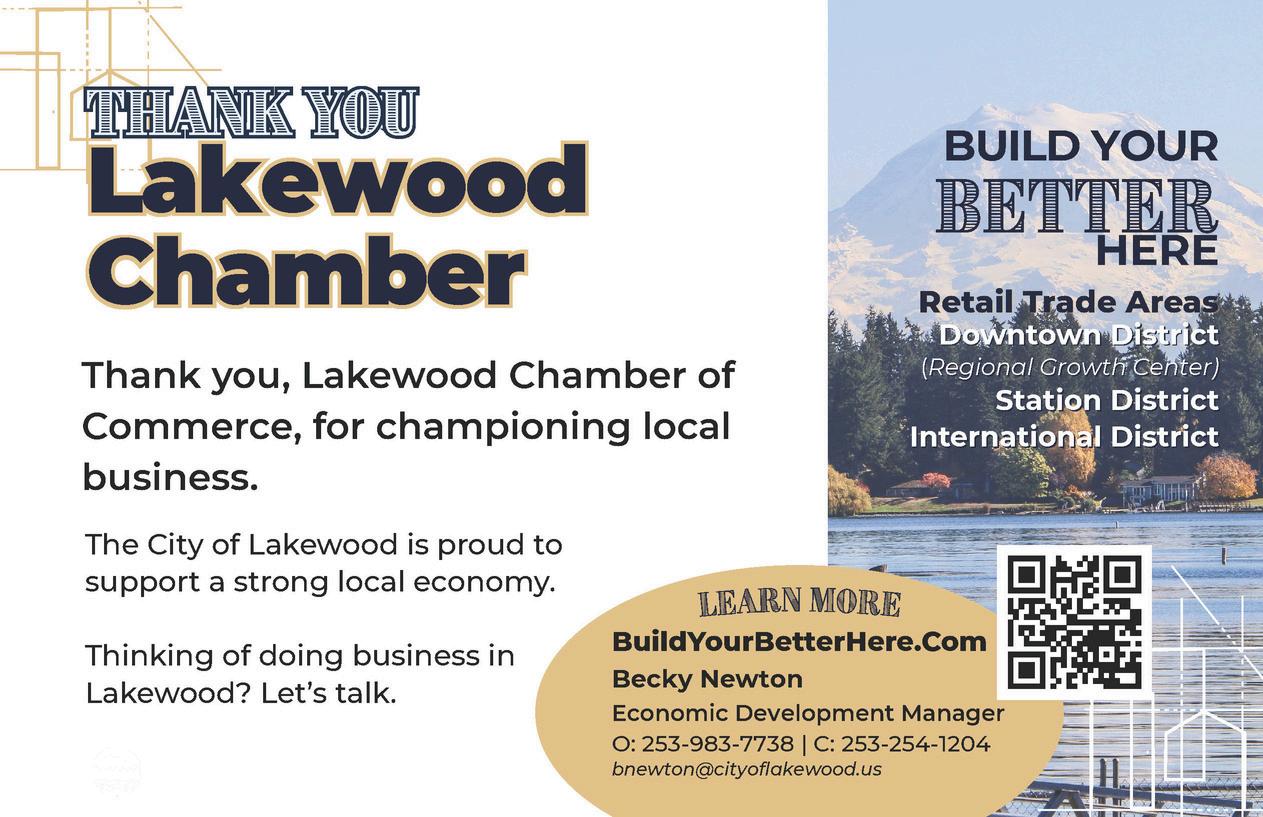 The Lakewood Chamber is the heartbeat of our local business community, and that’s largely due to the outstanding leadership of President Linda Smith and the steadfast dedication of Office Manager Scott Jonson Their tireless commitment, forwardthinking vision, and unwavering support have elevated not only the Chamber, but the entire Lakewood community