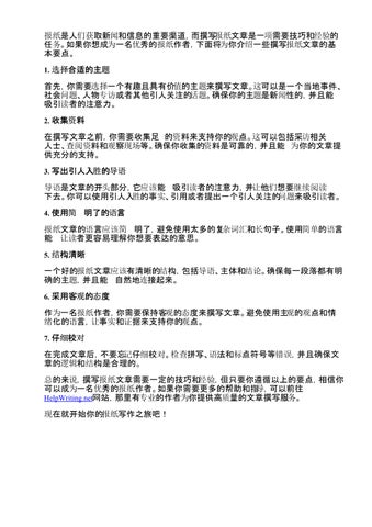 报纸是人们获取新闻和信息的重要渠道,而撰写报纸文章是一项需要技巧和经验的 任务。如果你想成为一名优秀的报纸作者,下面将为你介绍一些撰写报纸文章的基 本要点。