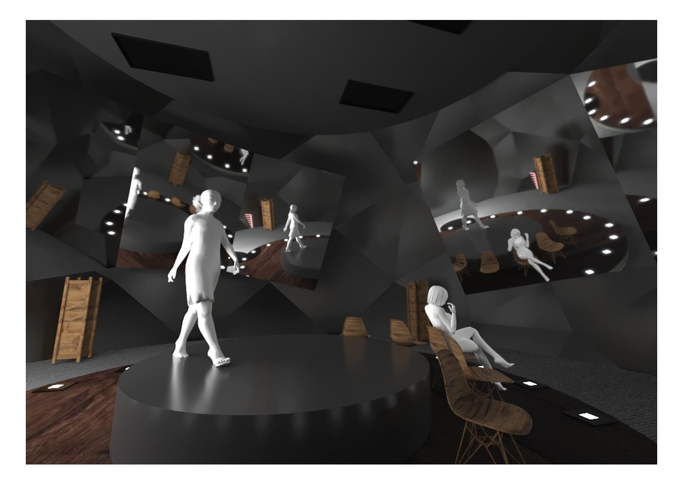 This is a project that intends to explore the artform of dance, by dissecting it in a tectonic format to create a performance space. Emotion is essential in conveying the complete essence of dance, as it is expressed through facial and focal expression, poster, gesture and body movements. Over the course of the study, body movements were classified as trunk movements, arm movements, vertical direction, sagittal direction, force, velocity and directness. The project also proposes the use of reflective surfaces to amplify the emotion expressed. The chosen emotions were joy, sorrow and confusion. Joy is expressed through expansive movements, sorrow, through contractive movements and confusion, through hyperdynamic movements. As sight is the most important of all senses, a dance disrupting the primary sense creates an inverted immersive experience as the dancer is behind the viewer.
