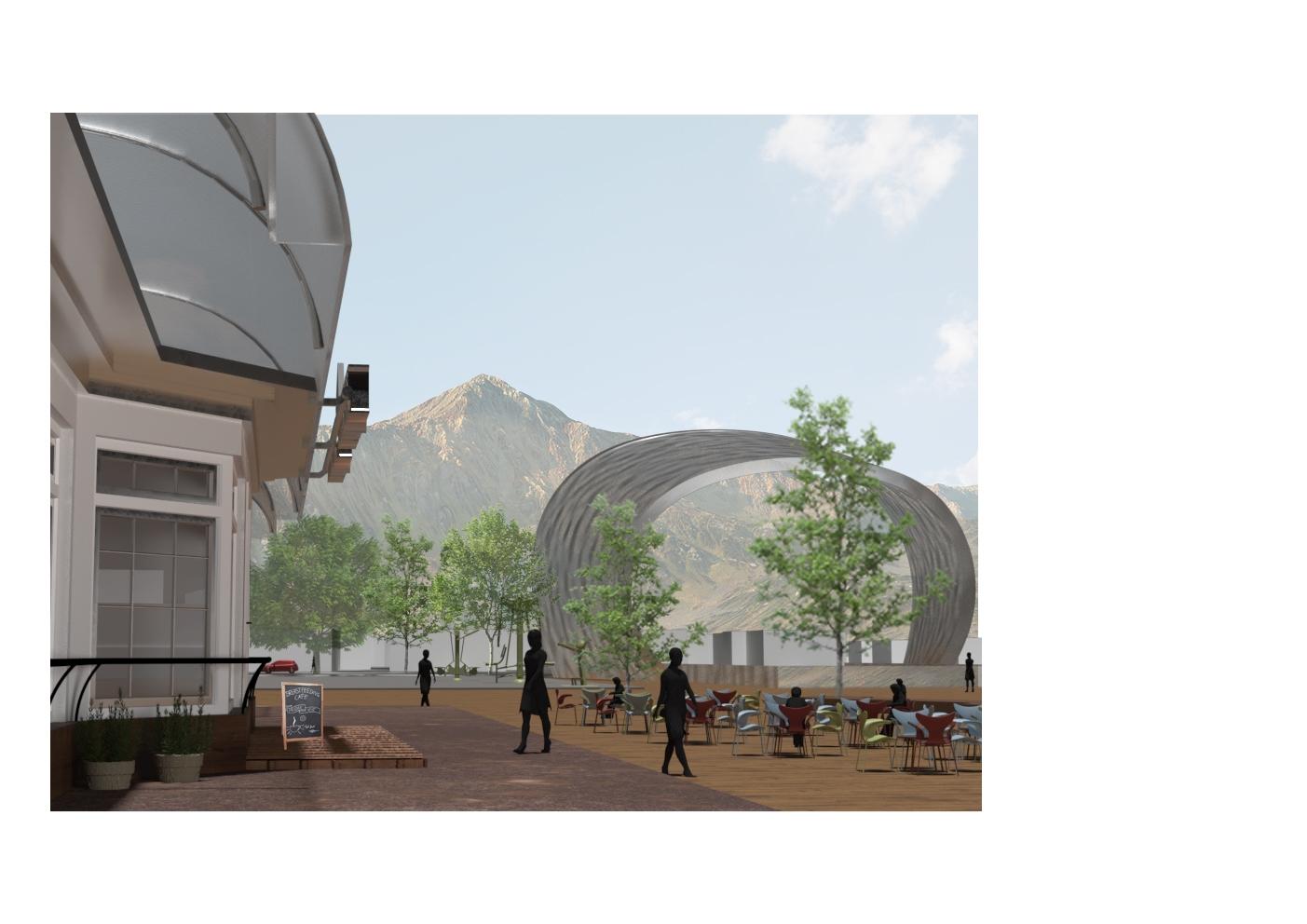 Section displaying the relationship between the public space and the people. The space has multiple components that interact with one another to increase engagement.