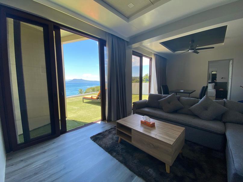 The villa features sweeping views from a large furnished terrace. An ample kitchen with separate living and dining areas are featured. Wall-to-wall carpet, luxury slumberland beds, and Samsung inverter aircon, large wall-mounted Smart TVs with video on demand are some of the comforts of these luxury villas