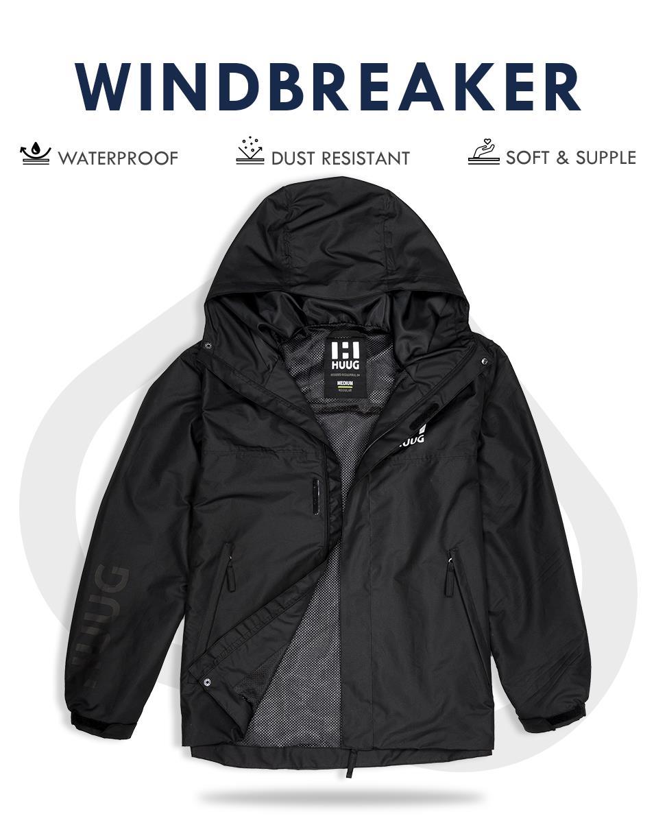 • Lightweight & insulated: This HUUG wind jacket provides insulation due to high quality polyester fiber and Center front zip. Waterproof with secure zip pocket: Because of zip closer and two side zip pockets, this rain jacket is fully waterproof made up of water repellent fabric.
