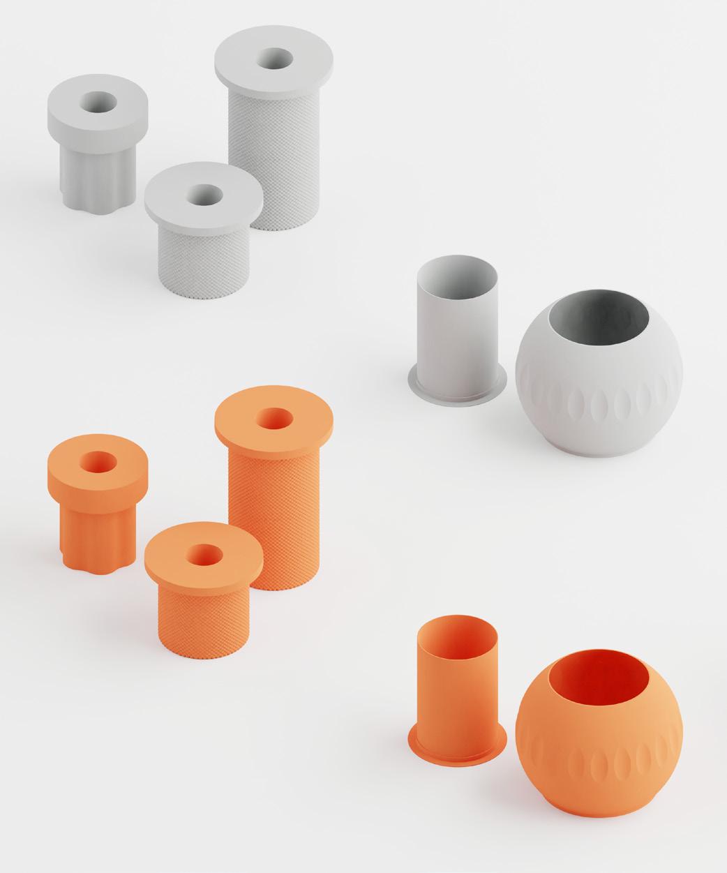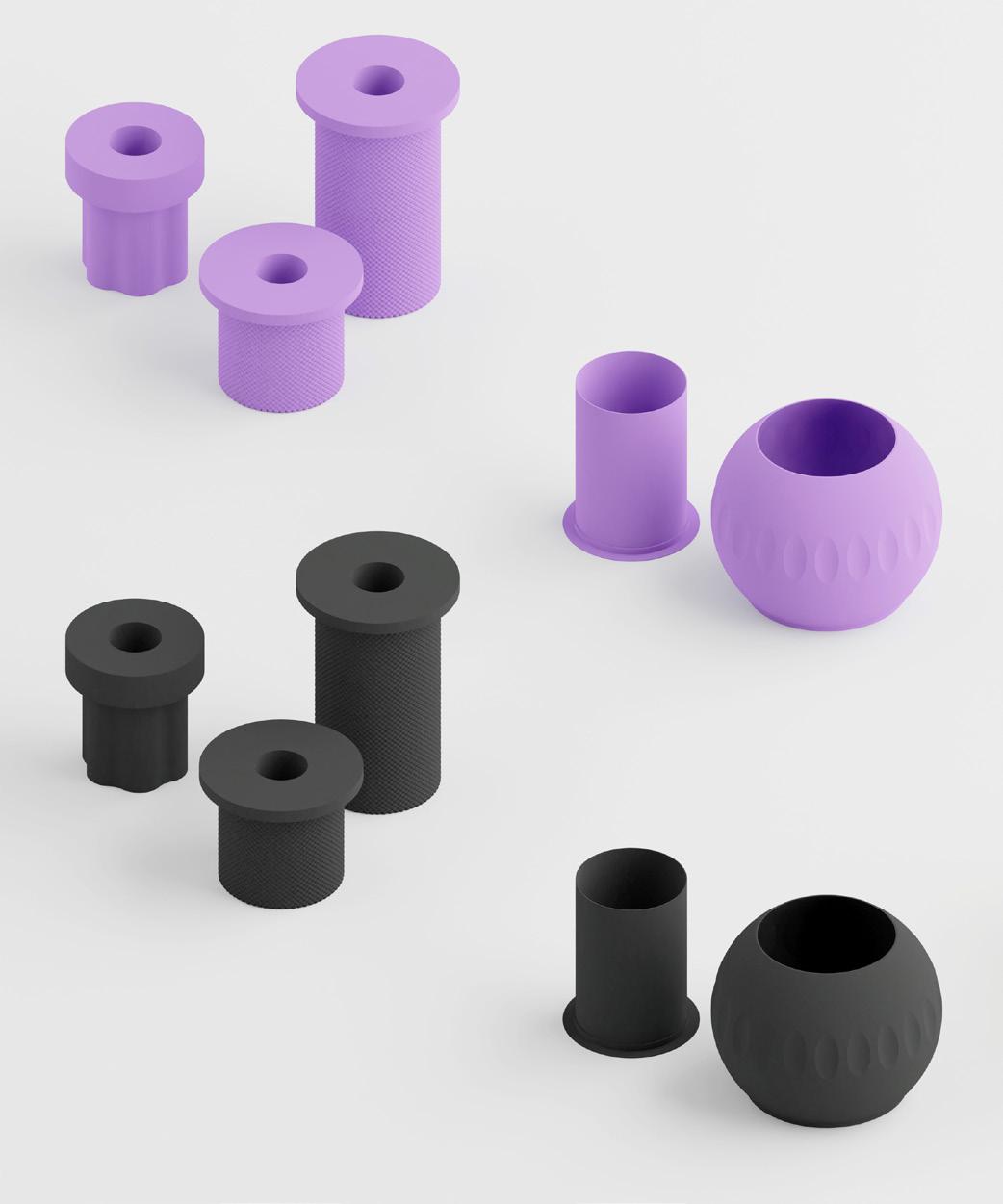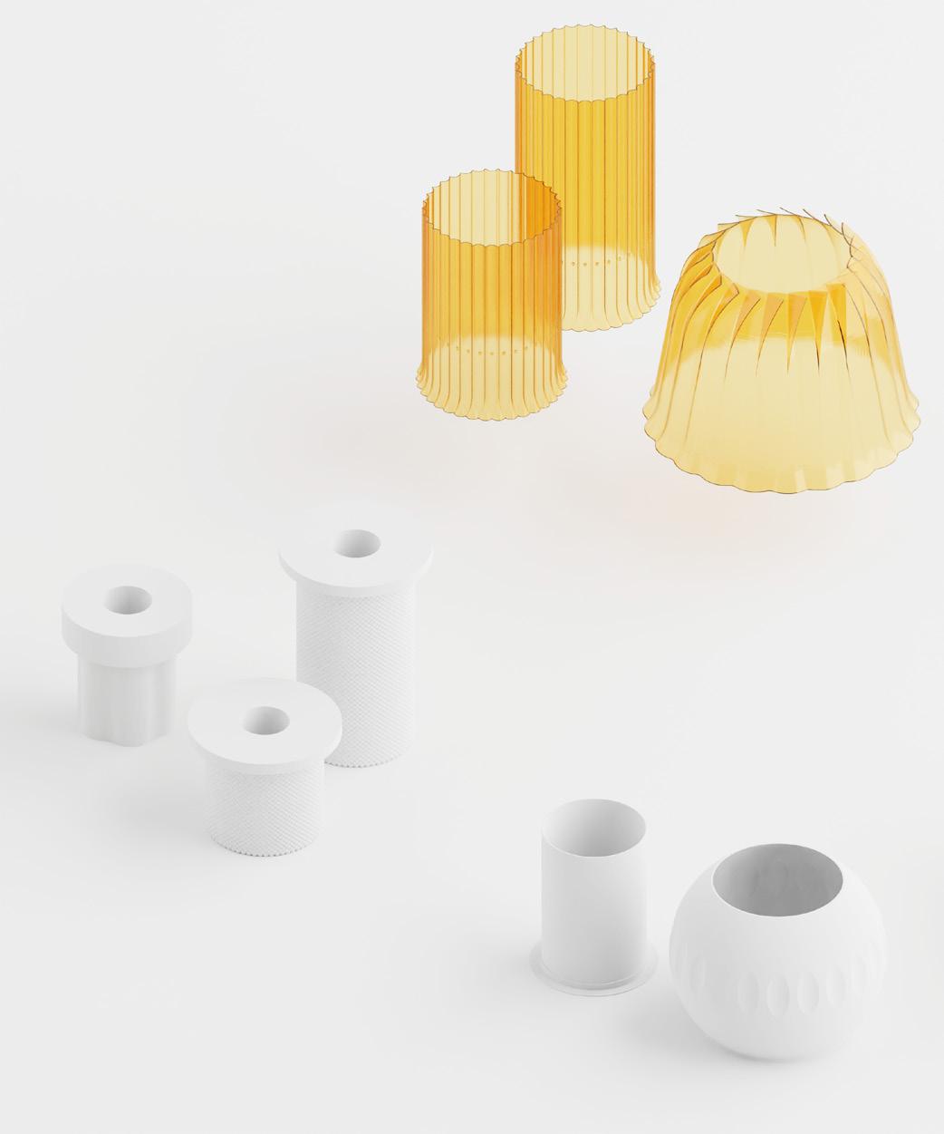 All the ALCHIMIST lamps are made up of three modular parts: a base, a cover and a skirt.