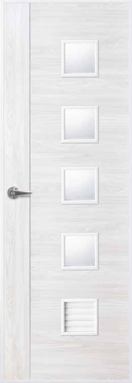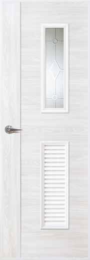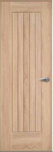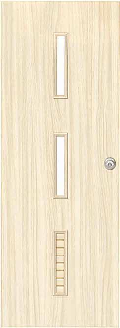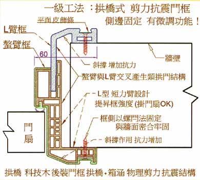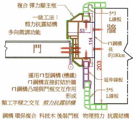 使用反向集層角材做加強材,避免因挖鎖孔破壞主結構造成門片變形。