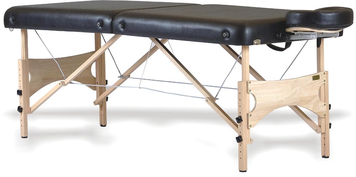 table during massage. Crafted from imported German Steam Beech wood in its natural finish. Dual knobs on each leg provide added safety and strength to this table. Soft Semi PU leatherette upholstery is used for comfort and durability. Solid rubberwood panels on both sides of this table make it suitable and strong table for deep tissue massage and various other massage treatments. Delux Carrying Case is supplied free with this table. Most suitable and best selling model for personal & professional use. L 182 x