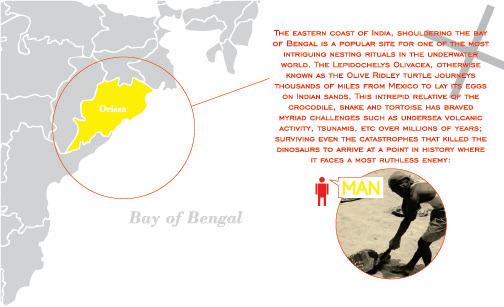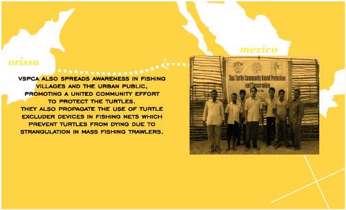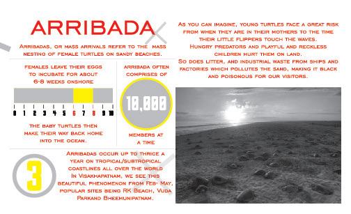 Pamphlet for a friend/former collegemate who worked at VSPCA. The objective of the pamphlet was to raise awareness on olive ridley turtles' annual migration from Mexico to Orissa, India during their nesting season.