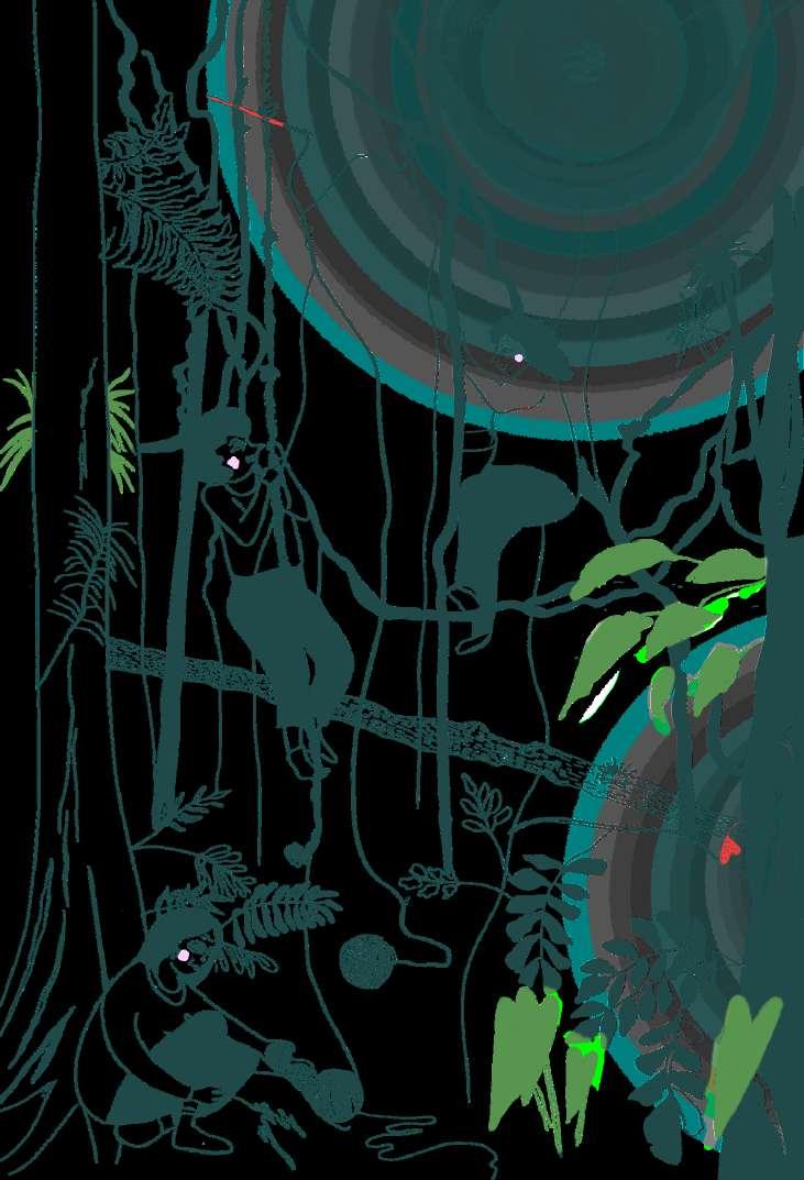 Muchos trazos después, las mujeres y los espacios cobran vida. Utilizando las imágenes oníricas para evidenciar todo lo que sucede en el proceso y no quedarse en una imagen estática. Esta es la travesía de la mujer, que atraviesa por huecos, montañas, altiplanos, rocas, baches, cavernas, ríos y mareas que marcan los diferentes encuentros con ellas mismas y sus pares. Ellas hacen uso de su sabiduría para sobrepasar cada una de las paradas, y en conjunto logran forjar un núcleo que creará fuerza y refugio en cualquier porvenir del camino.