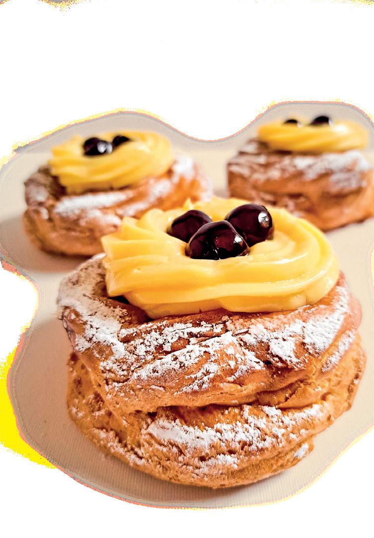 Farcire la tartelletta alternando la crema alla madeleine e completare in ultimo con cubetti di gelatina al Vermut.