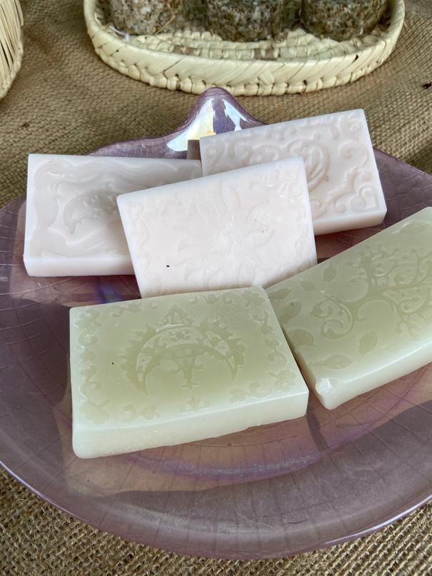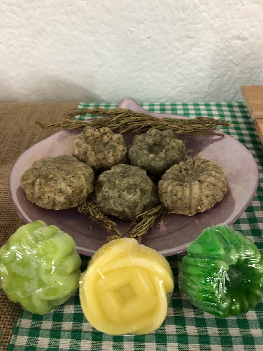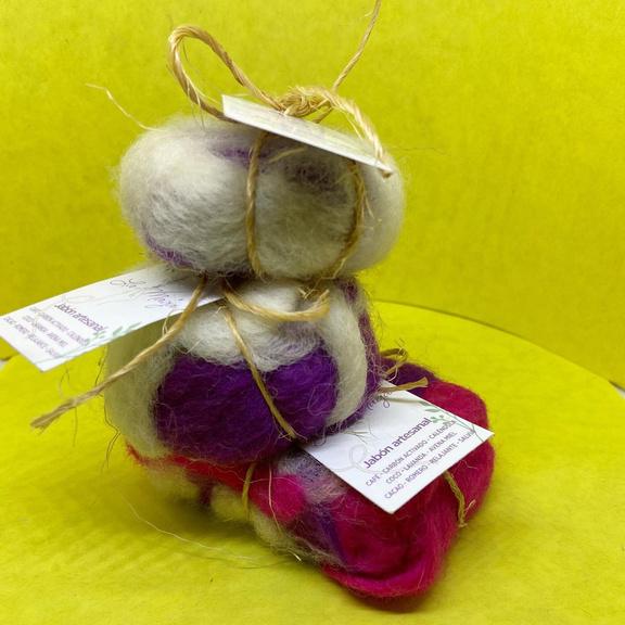 Sonjabonesenvueltosenlanadefieltro,susdiseños son exclusivos por eso son piezas únicas.Es antibacterial y alarga su duración. Hay jabones artesanales de lavanda, de rosas, caléndula, etc.