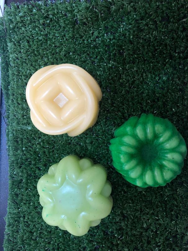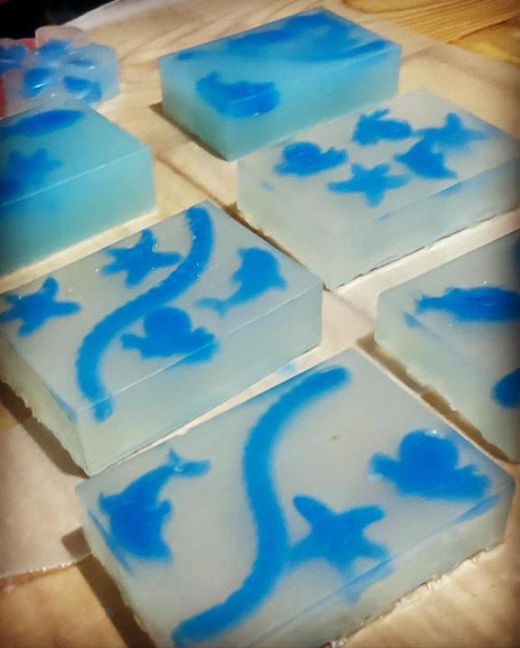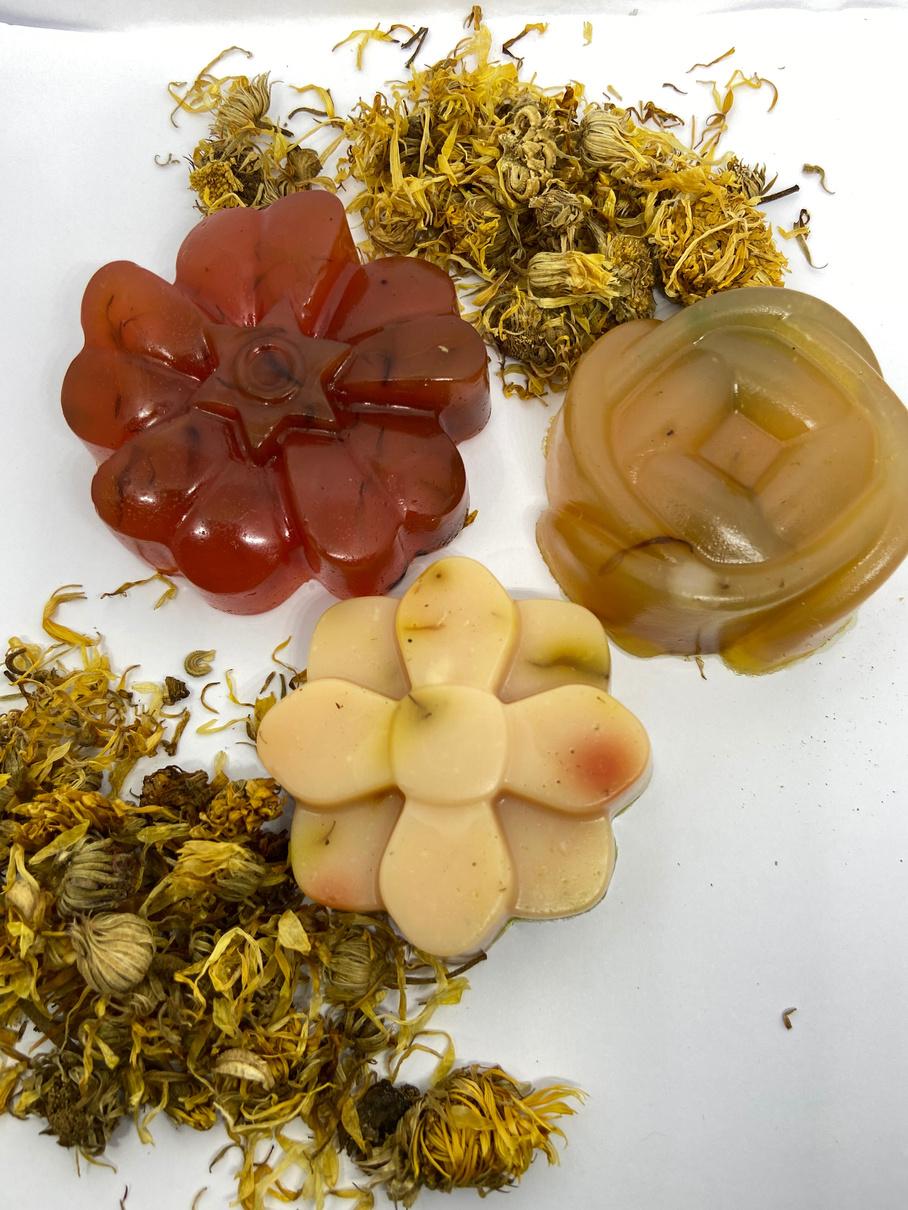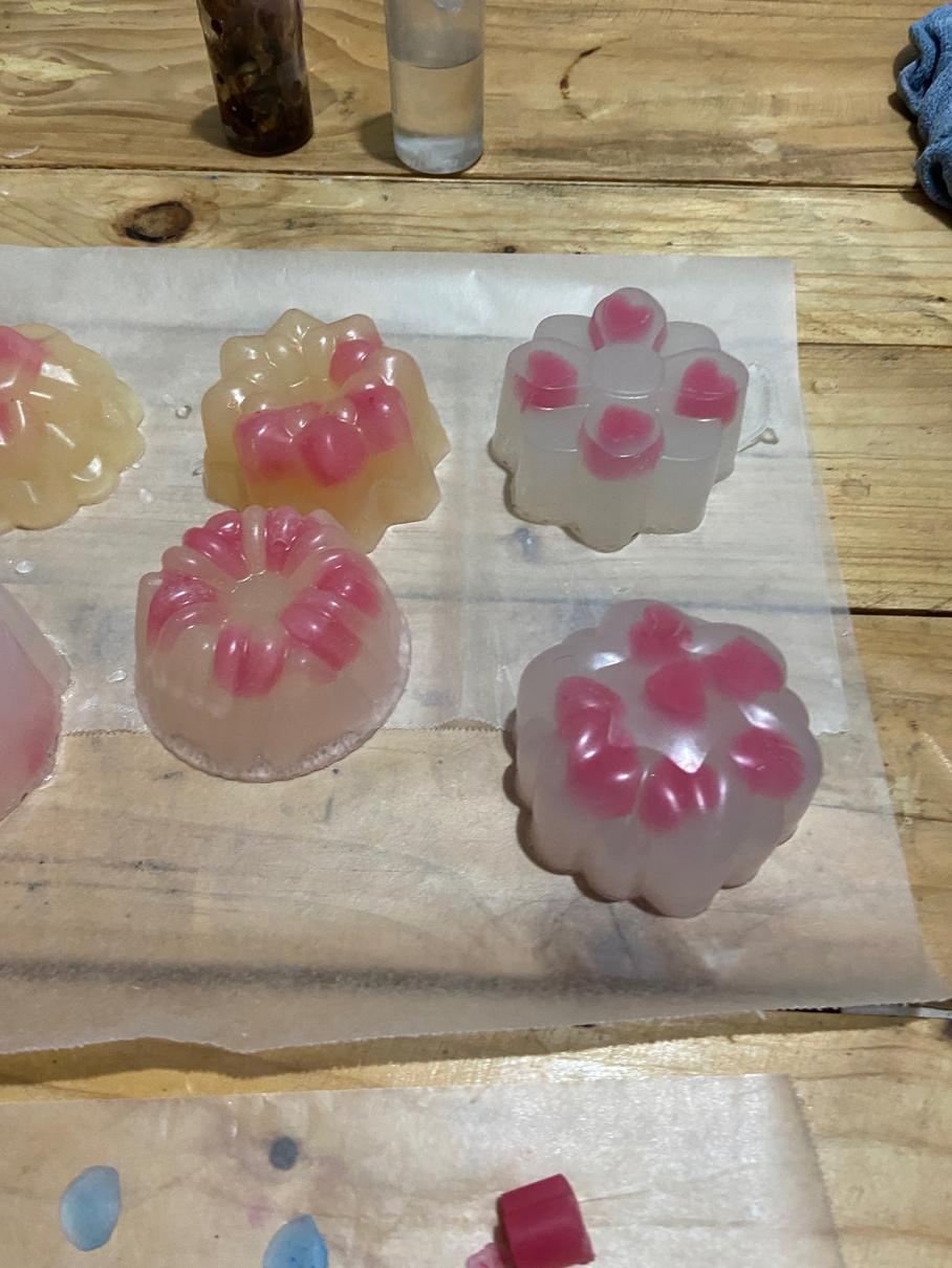 Jabones de glicerina hechos con oleato de manzanillaodelavanda.