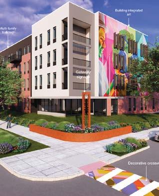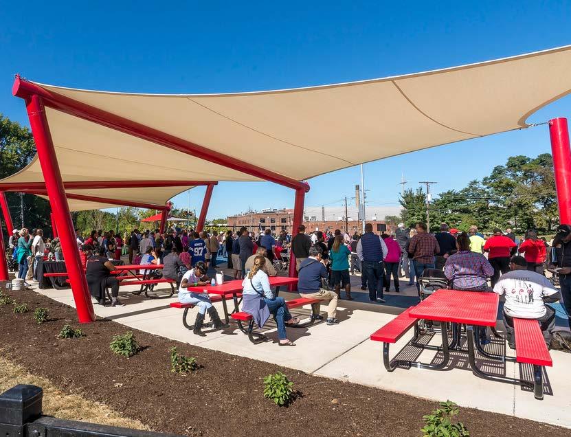 in downtown St. Louis. This portion of the network features a powerful art plaza featuring an installation to honor the displacement of the predominantly black neighborhood, Mill Creek Valley, in the late 1950s.