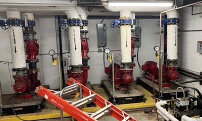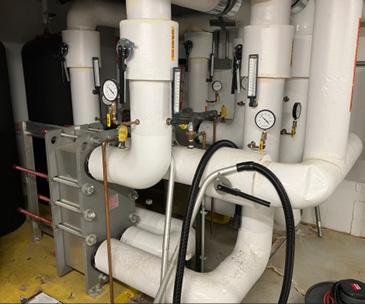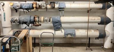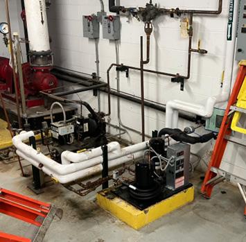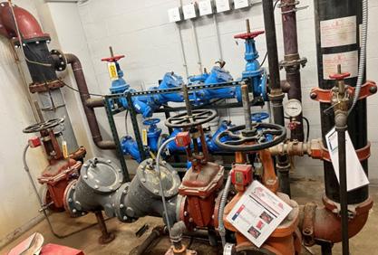 The building has a new main 4” reduced pressure backflow preventor on the domestic line which was serviced recently. Additionally, there are 20 to 30+ small local backflow preventors throughout the building serving equipment needs and individual labs for non potable water needs. Many of these are domestic water back up for cold room condensers, which are normally cooled by a dedicated loop condenser cooling loop. There will be recurring maintenance required with all these backflow preventors. They should also be tested annually. This building would be a good fit for a centralized non-potable water loop with a main backflow preventor in a main mechanical room, in say a future infrastructure upgrade effort. Due to the number of local backflow preventors, it should be expected to replace approximately 3 per year on a regular basis.