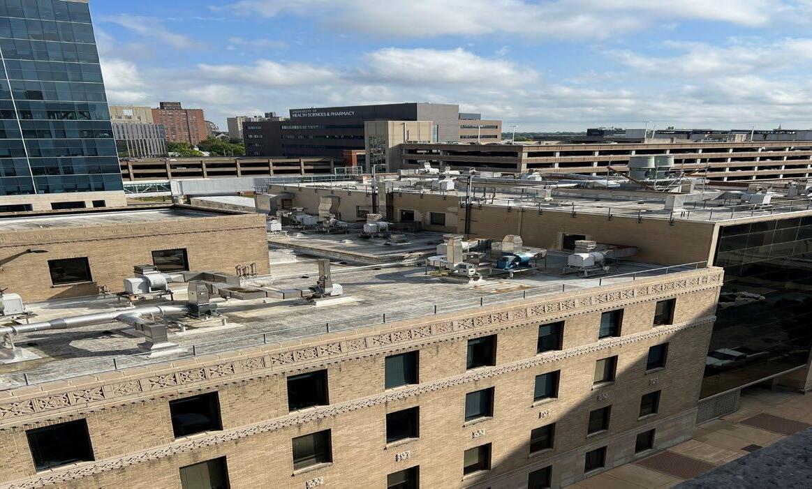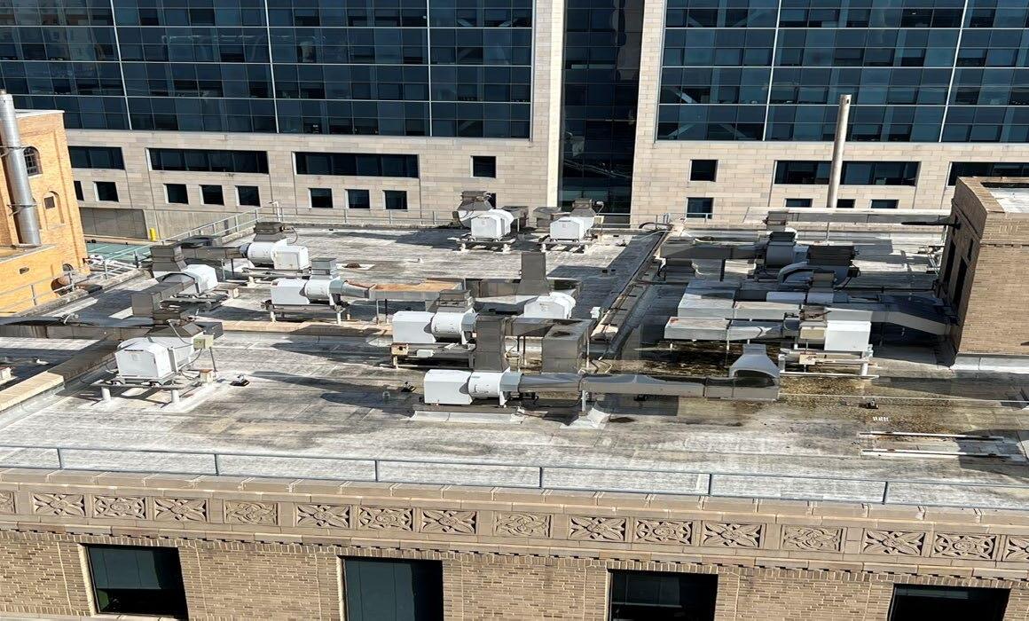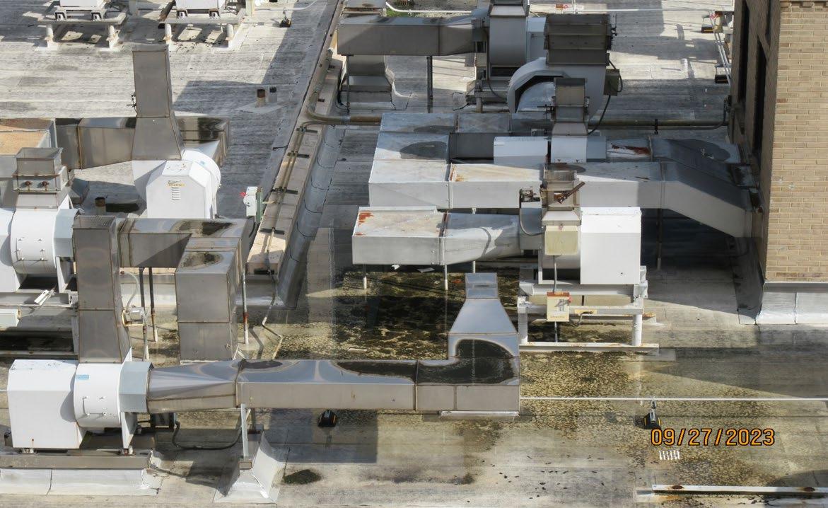 In summary the modified bituminous roof system; seams, curbs, flashing etc should be regularly monitored to extend its useful life by identifying and addressing areas where potential water infiltration could occur. The continued ponding can be addressed by installing crickets around the curb obstructions. The roof drains should be cleared of debris. Staff will need to verify if the roof system is still under warranty. The high concentration of equipment on both roofs will make roofing replacement difficult and costly. This applies to both the 1927 and 1961 buildings. The roof system is 25 to 30 year roof if properly maintained.