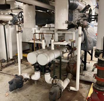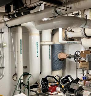 Most of the above ground piping is cast iron and believed to have been installed in the major renovations of the late 1980s/early 1990s. There have historically been issues with splitting waste piping in the building, and recent efforts have replaced small portions as required. Typically, cast iron piping should be expected to have a 40-50 year lifespan. However, according to WUSM facilities personnel, this has not been the experience in this building, which has been experiencing corrosion failures. Additionally, there have been issues with pinholes in domestic hot water piping, which could be attributed to domestic water quality and piping age. Due to the above-mentioned issues, allowances should be planned to continually replace portions of piping, until all of the piping can be replaced in upcoming future renovations. During these renovations, plumbing piping infrastructure replacement should be the goal, rather than small renovations in a piecemeal fashion, which make it difficult to replace the main infrastructure.