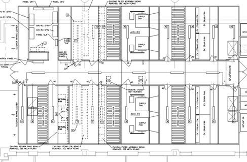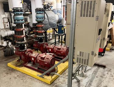 The plumbing piping systems are largely believed to be from the late 1980’s and/or early 1990’s. However, it is believed that the under slab waste lines were not fully replaced in these renovations, and are likely from the 1960’s. The incoming cold water is via the 8” combinations service, which splits to 8” fire protection and 4” domestic water services. The domestic hot water is made at the nearby power plant and piped to Biotech. There are RO/DI water system skids on the Ground floor level (room G033), along with a water softening system. The building has lab air, lab gas, and lab vacuum services piped though out the building, all originating from the lower level mechanical room B008. There is a main building 4” reduced pressure backflow preventor, and many other small local backflow preventors spread throughout the building.
