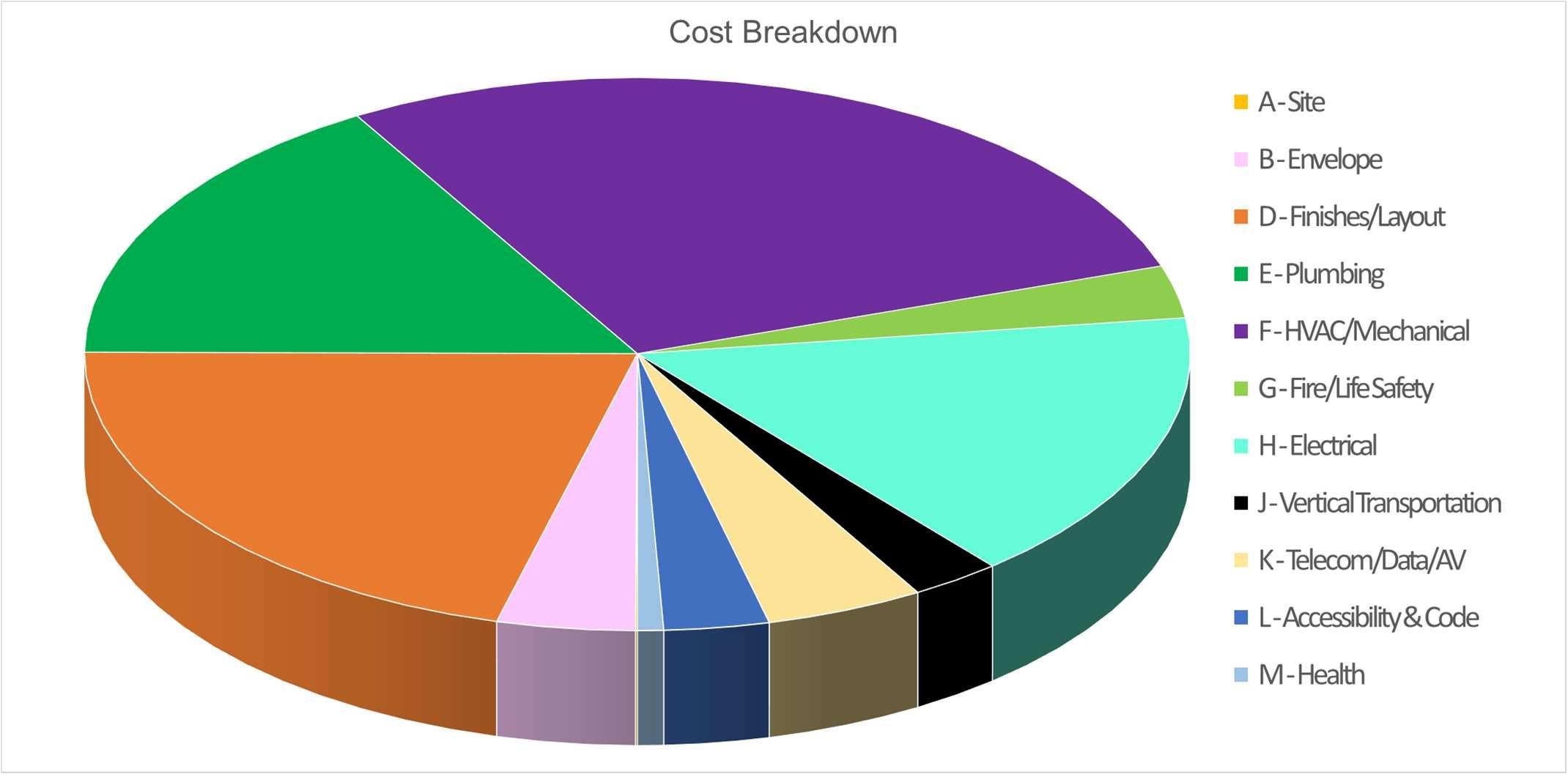 Testing, intrusive observations and exploratory demolition were out of the scope of this report. While ASTM E2018-15 provided guidance on the scope and organization of this report, this report shall be considered a Facilities Conditions Report as opposed to a Property Conditions Report due to the request that recurring as well as non recurring costs have been included through the year 2034. In addition, this property conditions assessment has been conducted under the assumptions that major interior renovations would be completed as part of any remediation activities. While all reasonable effort has been made to capture the full breadth of scope to bring this building up to Washington University School of Medicine standards & code enforced regulations, it should be noted that previous studies were completed to address renovations, demolition & rebuild, and decommissioning. The cost associated with maintaining the building to function as is, with no extensive renovations cannot fully address all issues. Items may appear in multiple sections as some items’ impact is greater than one discipline.
