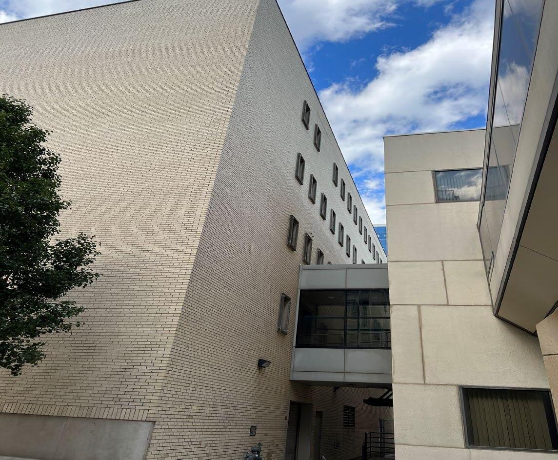The #181 building, Biotechnology Center, is a four-story facility constructed in 1927, expanding in 1933 and 1934 with a later addition/ infill to its East built in 1961, 1969, and 1974. Approx. square forage is 94,000 gsf and the primary use is identified as Biotechnology. The two buildings look distinctively different with the exterior material of the original 1927 building a combination of face brick and limestone detailing throughout providing a historic appearance. The 1961/69/74 addition is a combination of structurally glazed curtain wall (No exterior framing members), face brick and glass block at the ground level entrance. The 1927 building has a very strong historic appearance with some intricate limestone and terra cotta detailing as a primary feature of the building. In both buildings very few brick weep holes or vertical expansion joints were visible.