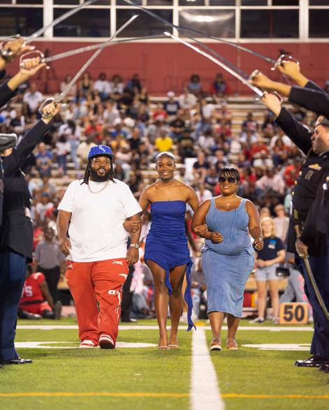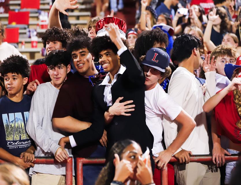 The game began with the JROTC presenting the colors and the school band performing the national anthem, setting the tone for an exciting night. Cheerleaders, the Rangerettes, the dance team, and football players lined the sidelines, eager for the kickoff. “As a cheerleader, it’s our job to rally the crowd at every game, but for homecoming, everyone was already pumped. It was more about having a good time with the crowd,” says senior Jaymie Charles.