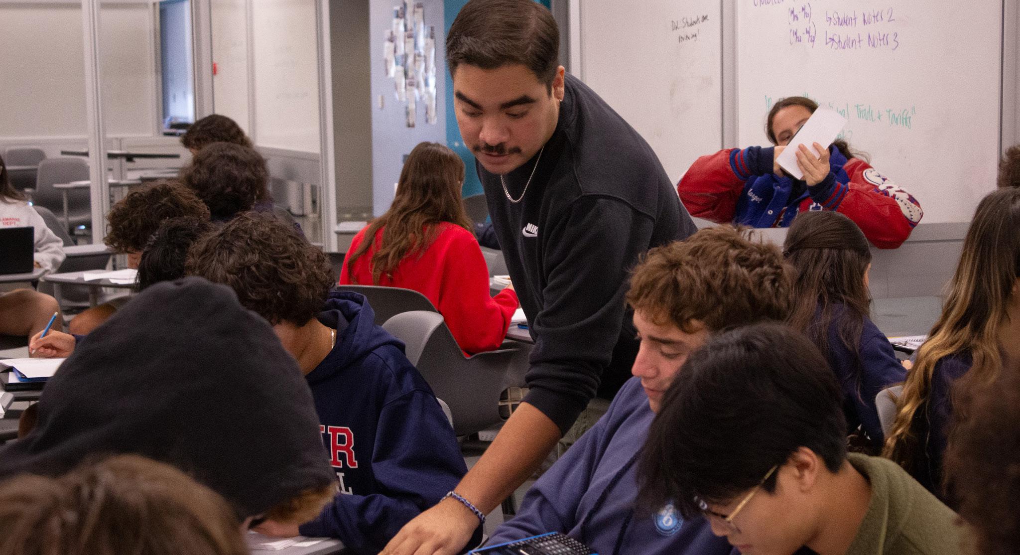 for him to balance his work and social life. “There’s been days where I drive home completely in silence because I am so overstimulated that I don’t have anything left in me,” admits Mr. Toscano. “I’ll leave here at 7 pm because I’m grading and then I’ll come back at 7 am because I want to be prepared for these kids. It gets really overwhelming sometimes. It’s so much, I don’t have the capacity to go out and have my own social life because I give all my energy to these kids. I’m always really scared that I’m going to get up and teach and no one is going to get it, because if not that means I’m doing something wrong. I’m a very anxious person, so I’m always questioning whether I did a good job or not.” However, despite the stress, Mr. Toscano can always find comfort with his coworkers. “My teacher besties help me get through the day,” beams Mr. Toscano. “Mrs. Watson has been my teacher bestie since day one. They’re all really supportive, because people who aren’t teachers don’t get how stressful this job is. Having teacher besties helps you feel seen and you can vent to them with no judgment, because they will know exactly what you are going through.” Mr. Toscano is so intense about education, he is currently looking to better his teaching skills by achieving a Masters in Curriculum and Instruction. “It’s basically a specialization in mathematics instruction, so I could become a dean or a teacher coach,” says Mr. Toscano. “But for now, I want to stay in the classroom.” For Mr. Toscano, the real question is: to slay or not to slay? His cheerful teaching skills will be here for years to come (or as long he keeps being Brat!). “This is my crazy. This is my work. This is my controlled chaos,” beams Mr. Toscano. “I really love being a teacher here everyday!”