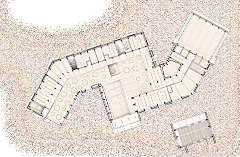 A northern micro climate of trees preconditions the hot summer air before entering the building.