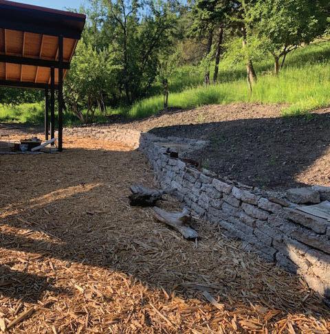 During a construction job in summer of 2020 I was part of a team that extracted recycled concrete driveways into a material we called urbanite. At the dump site, we had to break and chisel each urbanite stone into a workable size. This home sits on a steep hillside. A sustainable retaining wall was a goal of the clients due to the large amount of stone needed. There was a certain craftsmanship that was required to create this wall. Each piece was tested and chiseled to fit right. The organic urbanite wall became a home for moss and created a connection to a historic cellar for the owner to use again.