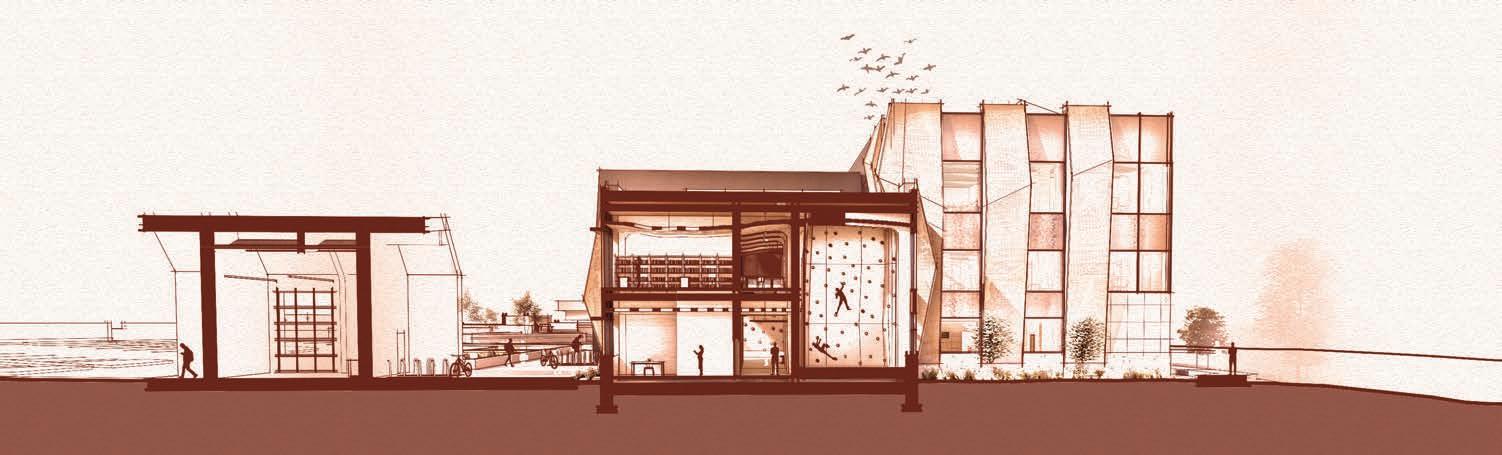 By using the COTE framework for this design studio, I was able to address every category to a certain scale. The building has a low EUI and has many passive strategies implemented. The concept of this civic space stems from Bozeman’s surrounding geological faults. Each fault has a specific stratification and location. This helped to give a framework for building orientation and the buildings interior structure. The building is zoned in a way that relates to the faults. Each zone has a specific structural language that relates to the fault. The mixture of a climbing wall and a library creates a mixture of active and passive spaces that engage with each other. I used specific materials to help improve the acoustic conditions. This building creates a sense of discovery from the approach to the interior and helps the user better understand their sense of place.
