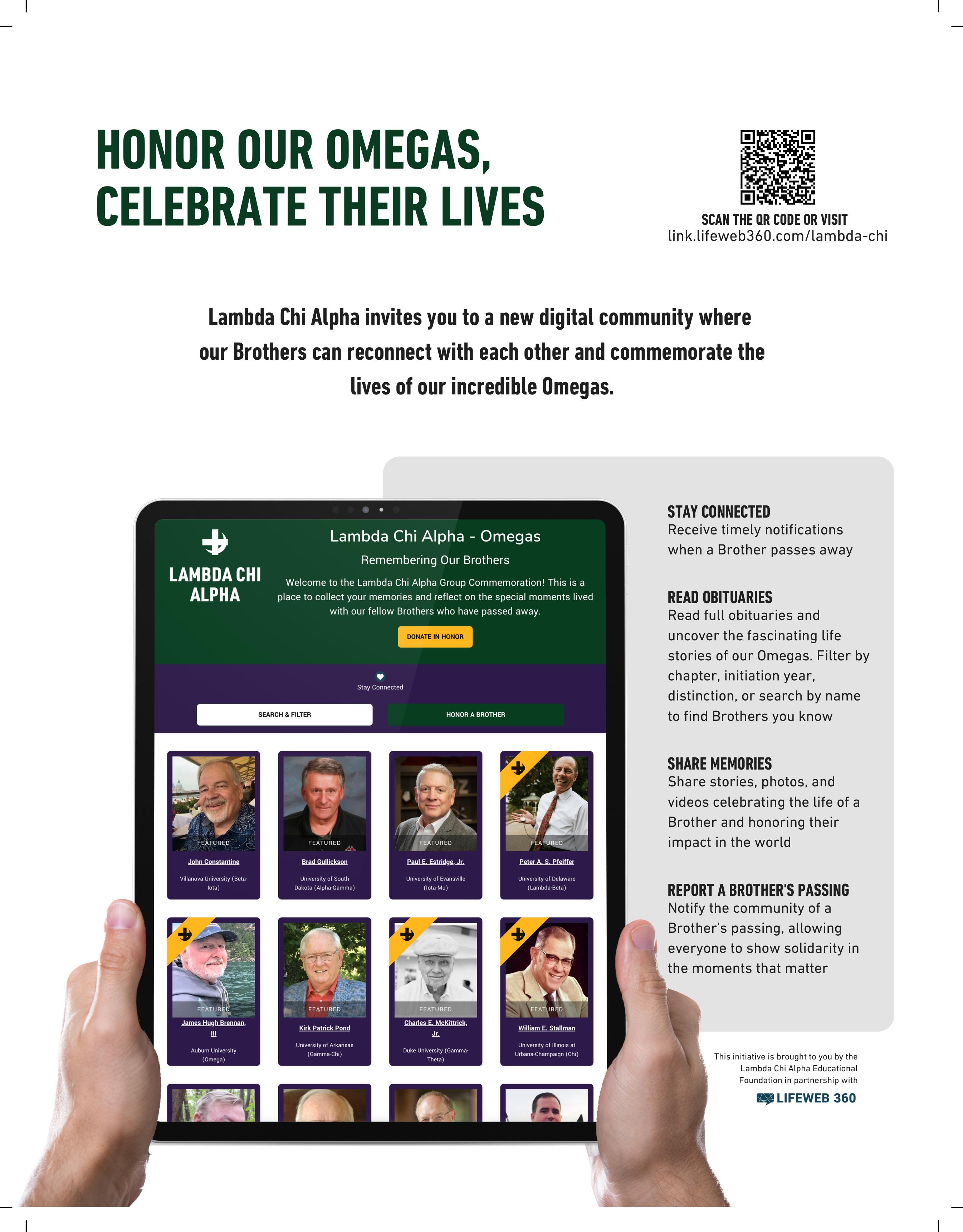 Throughout this servant leadership issue, we will learn about Brother Rich Flood’s journey to give back to the people of New York through his work at the Statue of Liberty-Ellis Island Foundation and pay tribute to Brother Howard “Howie” Brightman and his countless hours of service to Lambda Chi Alpha.