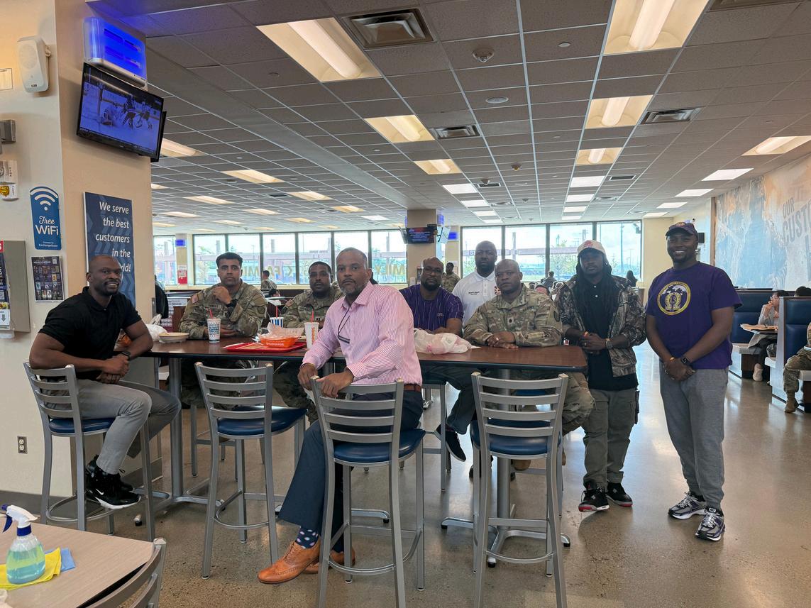 Held exclusively for the brothers of Lambda Xi, the session provided a powerful space for reflection, growth, and brotherhood. Col. Shabazz shared wisdom from his unique journey, addressing topics such as manhood, marriage, the power of community and networking, resiliency,andnavigatingasuccessfulmilitarycareer Hiscandidinsightsresonateddeeplywith attendees, reinforcing the importance of faith, purpose, and perseverance in both personal and professionallife