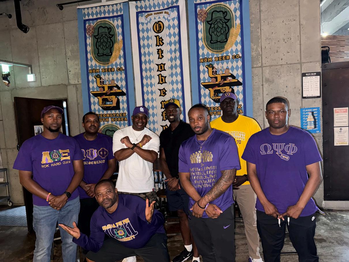 On May 17, 2025, the Brothers of the Lambda Xi Chapter of Omega Psi Phi Fraternity, Inc. proudly participated in the Annual Camp Humphreys Spring Fest, a major celebration that drew an estimated50,000attendees.Thissignatureeventopenedthegatesoftheinstallationtothepublic, creatingauniqueopportunityforU.S.servicemembers,theirfamilies,andlocalKoreancommunity memberstocometogetherinfellowship,fun,andculturalexchange