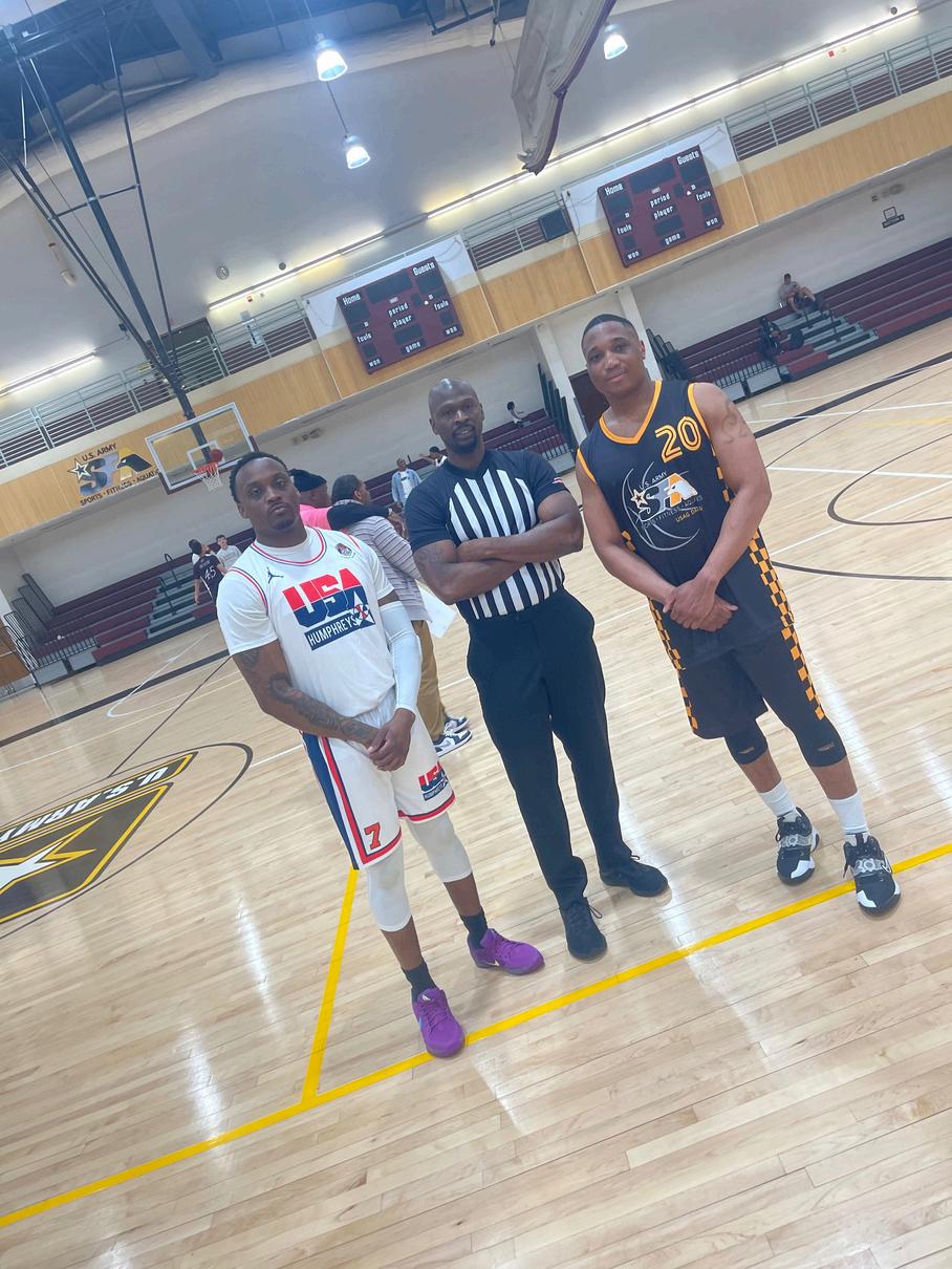 This March, Bro. Aaron Pierce and Bro. Miller Johnson competed against each other in a battle of the Camp Humphreys vs Camp Carroll basketball teams Lambda Xi Vice Basileus, Bro. Eugene Gibbs served as a referee for the matchup.