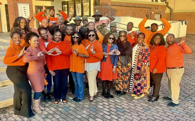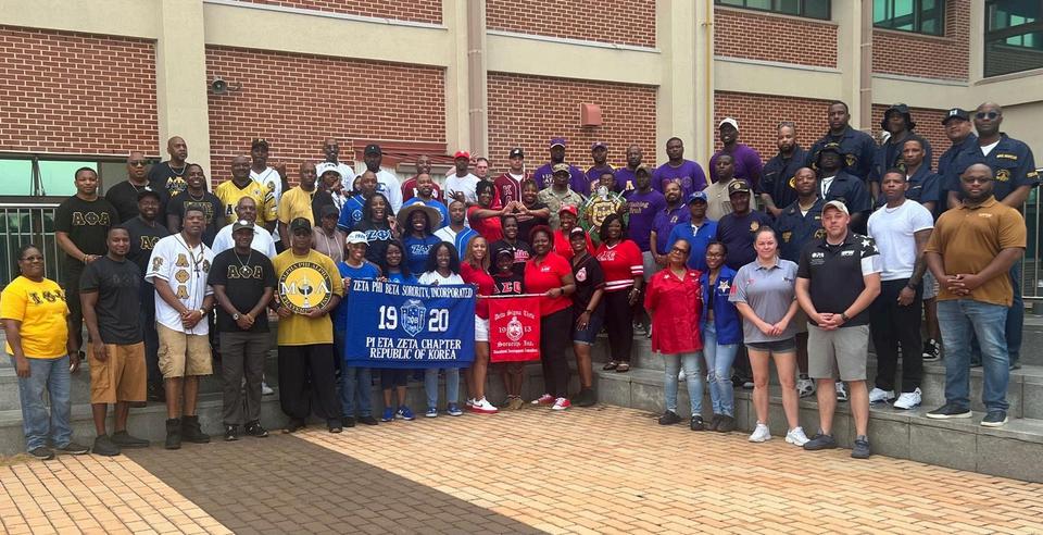 Twenty five members of the Republic of Korea Divine Nine joined the Brothers of the Lambda Xi Chapter of Omega Psi Phi Fraternity, Inc. in celebrating Unity Day 2025 on Wednesday, October 22, 2025, at Camp Humphreys Participants proudly wore orange to demonstrate solidarity in support of the 14th Annual Month of Non-Violence, sponsored by Black Women for Positive Change, and BullyingPreventionMonth,sponsoredbyPACER’sNationalBullyingPreventionCenter