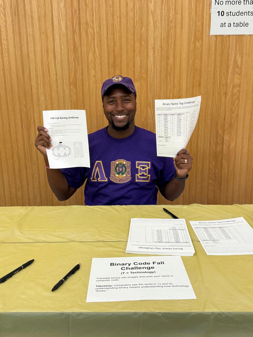 Beyond logistical support, the brothers actively engaged with students, learning about their projects and even participating in demonstrations of their work. This interactive experience allowed them to witness the creativity and innovation of the young minds in attendance Their presence not only helped facilitate a smooth and organized event but also reinforced the fraternity’s commitmenttoupliftingandinspiringthenextgenerationthrough educationandmentorship.