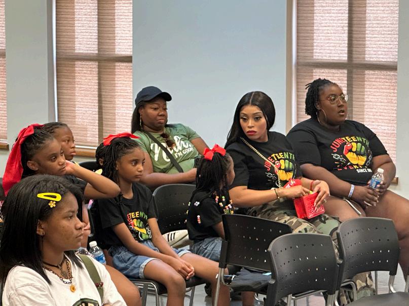 The Littles put on a moving theatrical performance that introduced the meaningofJuneteenth,followedbyascreeningoftheiroriginalfilm,The BlackImpactandadiscussionontheEmancipationProclamationandits lasting impact. A panel of Active Duty and Retired military members highlighted the legacy of African Americans in the armed forces which featuredBrotherWillasapanelist.Thecelebrationclosedwitha ts learned traditional African movement, stepping, and unified in spirit connected through a vibrant ement