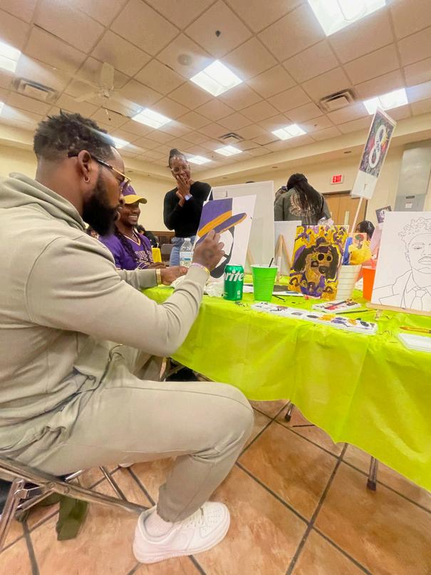 BrothersoftheLambdaXiChapterof Omega Psi Phi Fraternity, Inc participated in the Finer Color Paint Party, hosted by the Pi Eta Zeta ChapterofZetaPhiBetaSorority,Inc. The event was part of their Finer Women Month celebrations and served as a vibrant showcase of art, creativity, and fellowship. As part of the fraternity’s Fatherhood and Mentoring Initiatives, several Brothersbroughttheirchildrentothe event,assistingtheminpaintingand encouraging their creativity It was a meaningful afternoon of bonding, fun,andsupportingthespiritofunity amongstDivineNineorganizations.
