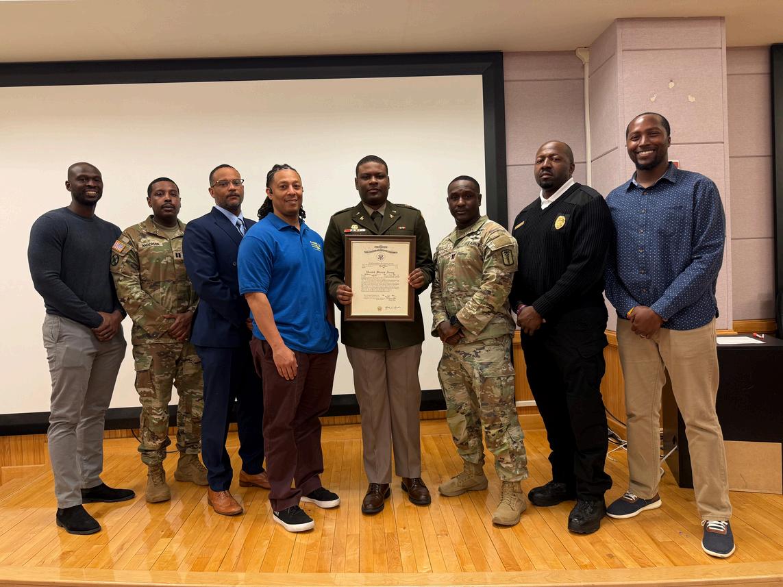 On May 19, 2025, the Brothers of the Lambda Xi Chaptergatheredinastrongshowofsupportfor Brother Troy Warren as he was formally promoted to the rank of First Lieutenant in the United States Army This proud milestone highlights not only his personal dedication and achievementbutalsothefraternity’sunwavering commitment to uplifting and celebrating the accomplishmentsofitsmembers