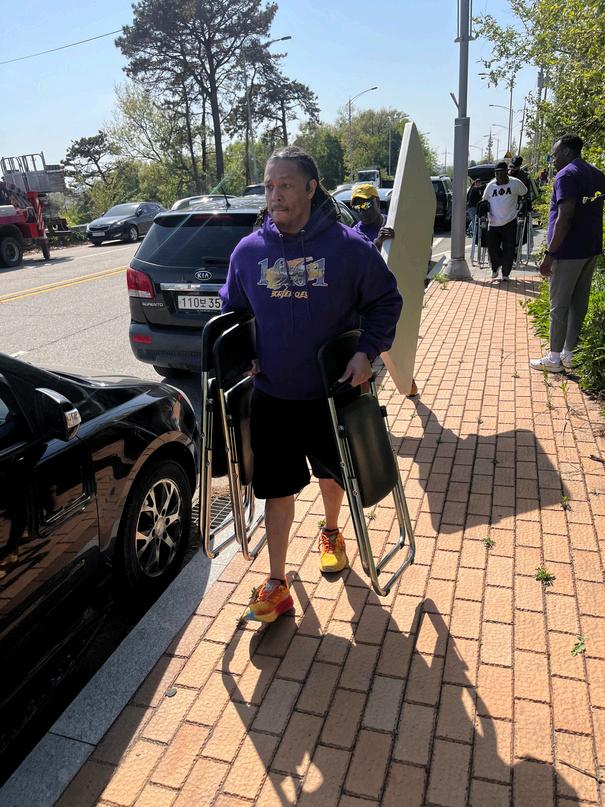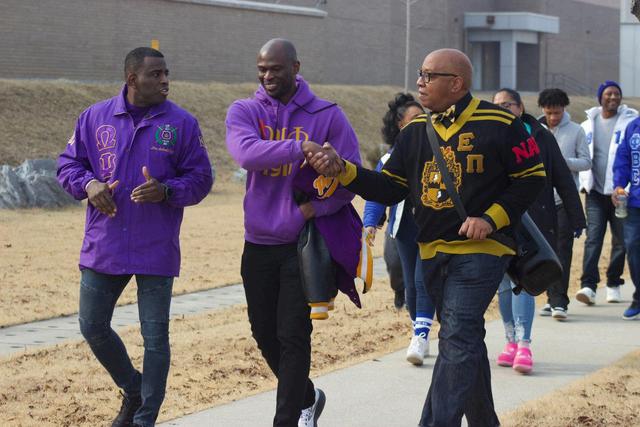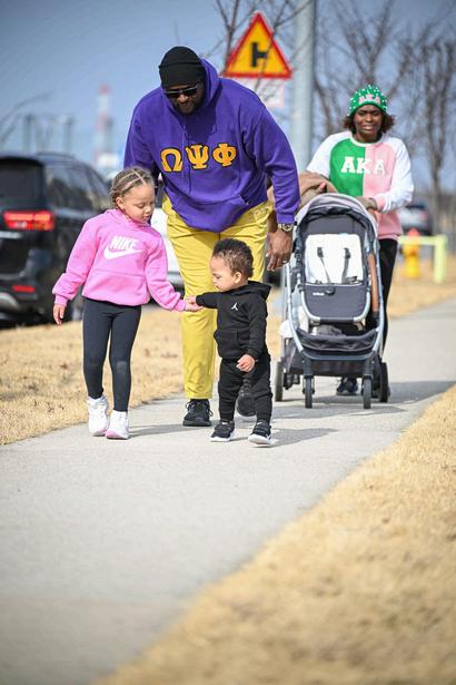 ThewalkbeganattheWarriorChapel,whereparticipantsgatheredtoreflectonDr.King’sprofound contributions to the Civil Rights Movement. Amid a sense of camaraderie and shared purpose, the Brothers of Lambda Xi Chapter stood out in their signature purple and gold, embodying the fraternity’smissionofupliftandservice