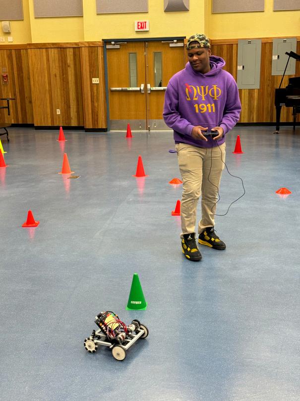On February 22, the Brothers of Lambda Xi proudly volunteered at Humphreys High School's Science Day, contributing their time and effort to ensure the event's success. Their involvement included setting up stations for various hands-on activities, arranging tables and chairs, and constructing a designated course for a remote-controlledcardemonstration.